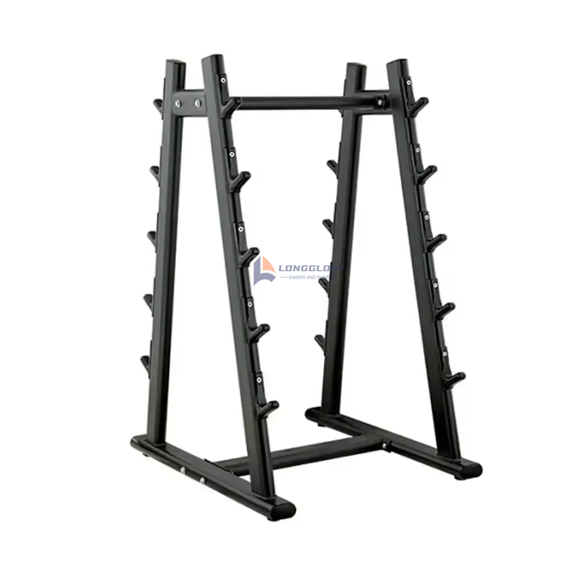 Il rack per bilancieri Longglory è saldato con robot intelligenti, le saldature sono lisce e resistenti. La superficie del portabilanciere è verniciata mediante processo di spruzzatura elettrostatica, dopo tre volte di spruzzatura, la superficie del prodotto è liscia, facile da pulire, resistente alla corrosione, il che migliora notevolmente la durata del prodotto.