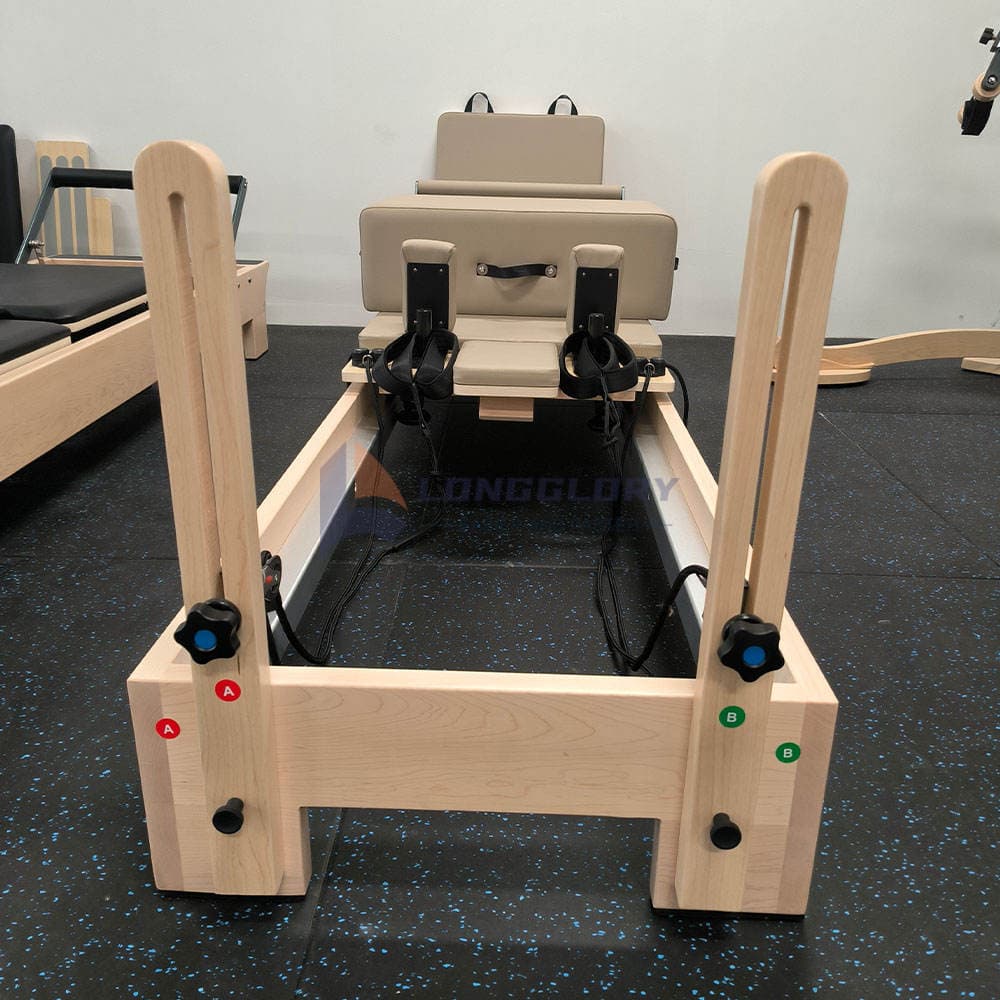 Il letto multifunzionale per pilates in legno d'acero è un apparecchio per pilates di fascia alta realizzato con legno d'acero resistente per garantire stabilità a lungo termine, estetica naturale e prestazioni fluide. Questo letto per pilates in legno d'acero è progettato per supportare un'ampia gamma di esercizi di pilates, tra cui rafforzamento del core, controllo dell'equilibrio, allineamento della colonna vertebrale, allenamento per la flessibilità e terapia riabilitativa.