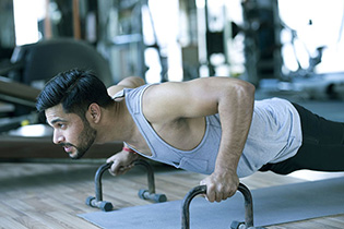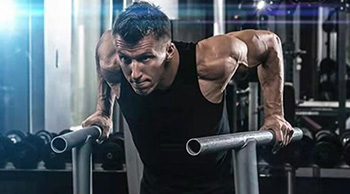 L'esecuzione di push-up a gamma larga su barre di push-up consente un impegno più profondo della spalla, rafforzando i muscoli deltoidi anteriori e laterali.